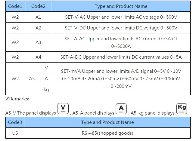 Selected type and specification of single-row window: VA - Code 1 - Code 2 + Code 3