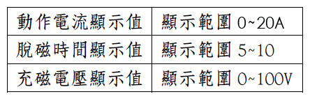1. 脫磁時間動作值範圍 5~18 秒。