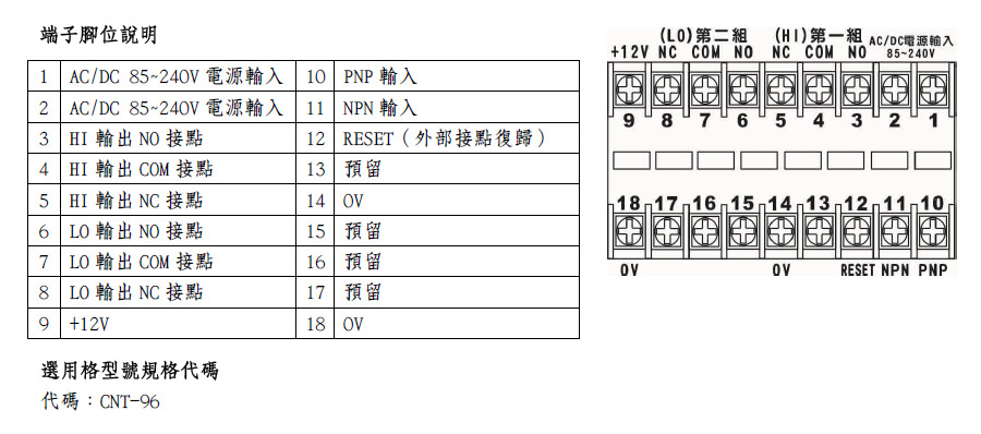 ♦工作電源:AC/DC 85~240V ♦顯示範圍:0~9999 |