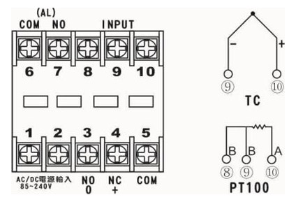 ♦工作電源:AC/DC 85~240V ♦輸入信號:K、PT100 |